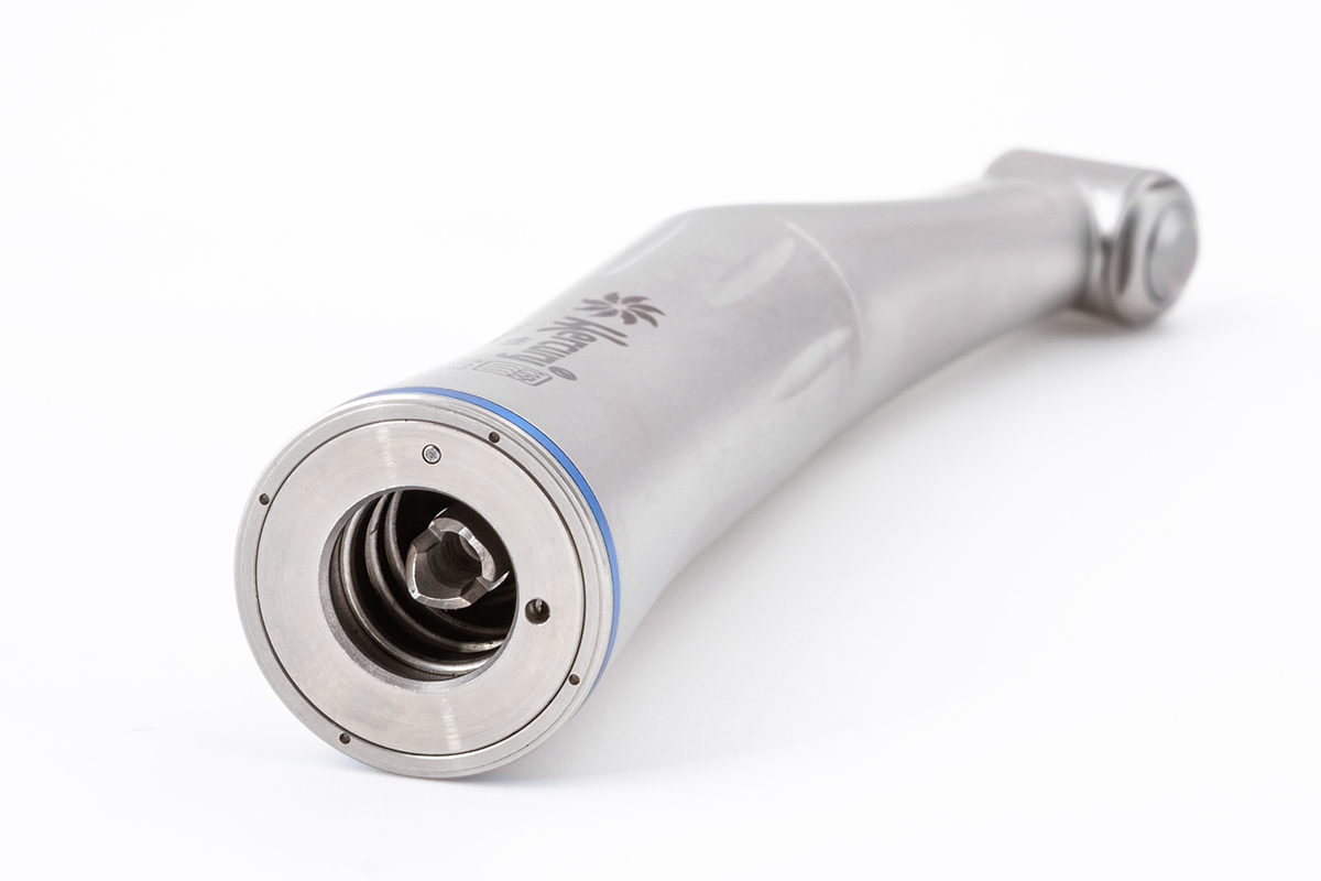 Максимальная скорость вращения бора наконечника составляет 40 000 оборотов в минуту. Так как придаточное число инструмента составляет 1:1, можно быть уверенным в том, что инструмент сохранит высокую скорость работы даже при сильном нажиме без риска возникновения вибрации. Наконечник подходит для боров диаметром 2,35 мм, что означает, что для него подходит множество разнообразных режущих инструментов, что делает инструмент универсальным.