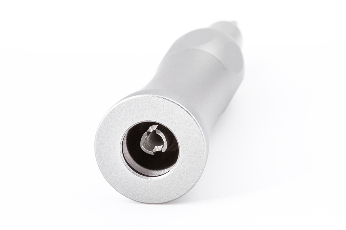 Для охлаждения используется наружная система подачи воды. Максимальная скорость вращения бора составляет 40 000 оборотов в минуту, что является хорошим показателем для наконечников этого типа. Инструмент легко подсоединяется к установке, так как оснащен зажимным устройством с защелкой. Диаметр хвостовика для бора составляет 2,35 мм.