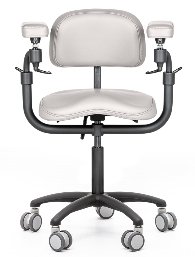 Комфорт — основная характеристика данного стула. Сиденье полуседло совмещает в себе посадку классического и седловидного стула, что снимает нагрузку с позвоночника.