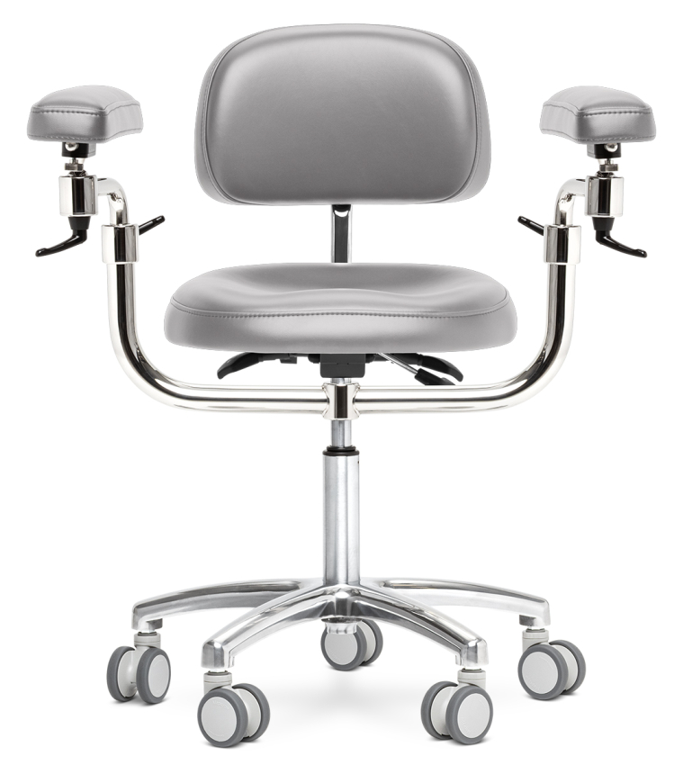Одна из самых важный частей стула микроскописта — подлокотники. Они помогают долгое время держать руки в одном положении без появления боли. Подлокотники стула Mercury ELITE оснащены функцией регулировки высоты и наклона. Вы можете настраивать их так, как вам будет удобно для более комфортной и продолжительной работы.